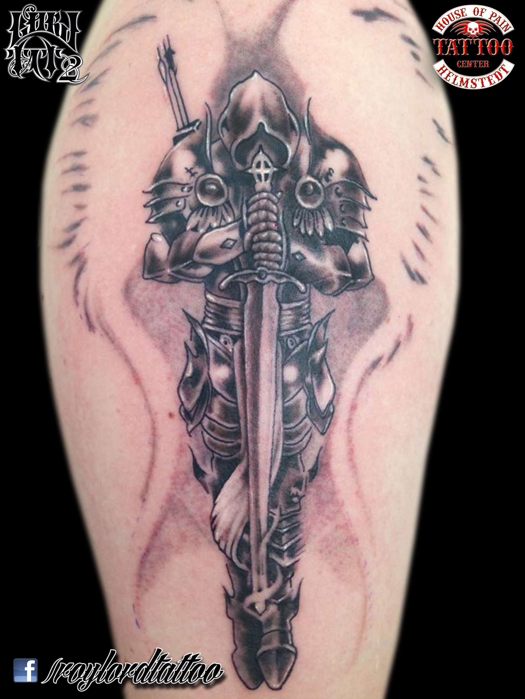 Upper Arm Floating Paladin With Electric Wings Holding A Shield Tattoo Contest 99designs
